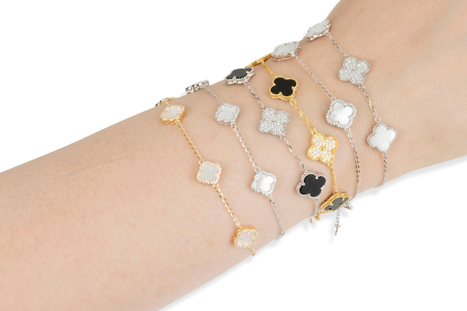 Step into the spotlight with our stunning collection of clover bracelets, the accessory that anyone who's anyone is wearing right now. Worn by celebrities, loved by influencers, and seen across runways and social feeds, the clover bracelet has become a modern icon of style, luck, and understated luxury. Whether layered for a bold statement or worn solo for everyday elegance, each piece in our collection is designed to capture that effortlessly chic look that's taking the fashion world by storm. With its timeless silhouette and symbolic meaning, the clover bracelet is more than just a trend, it’s a must-have for any modern jewellery lover.